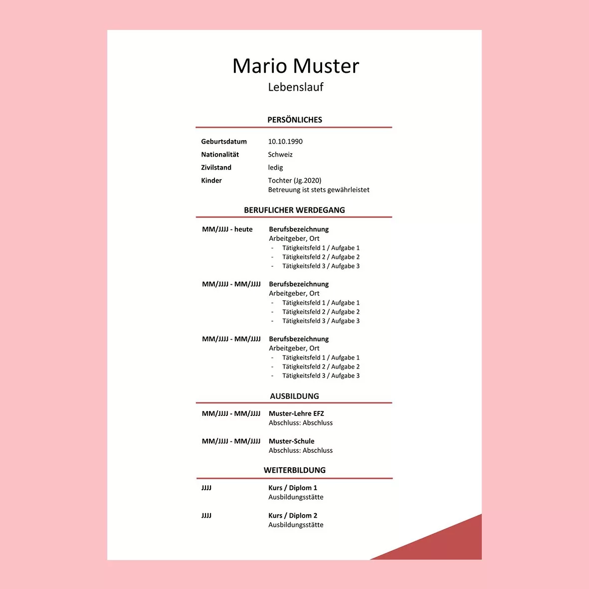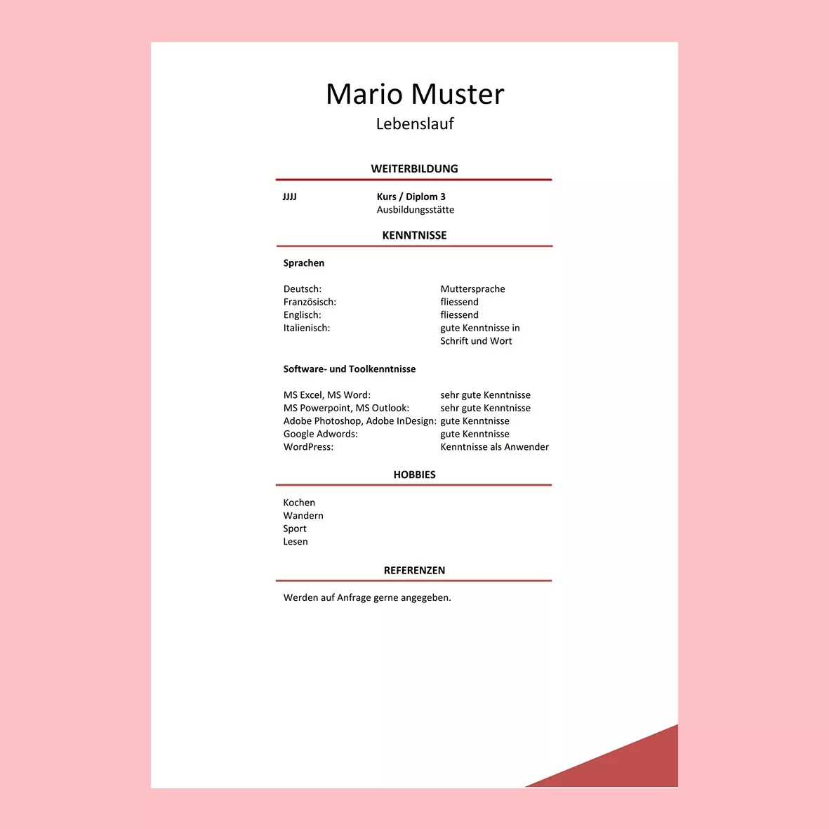 Und eine tolle Umsetzung meines Lebenslaufs. Super-Optimierung.