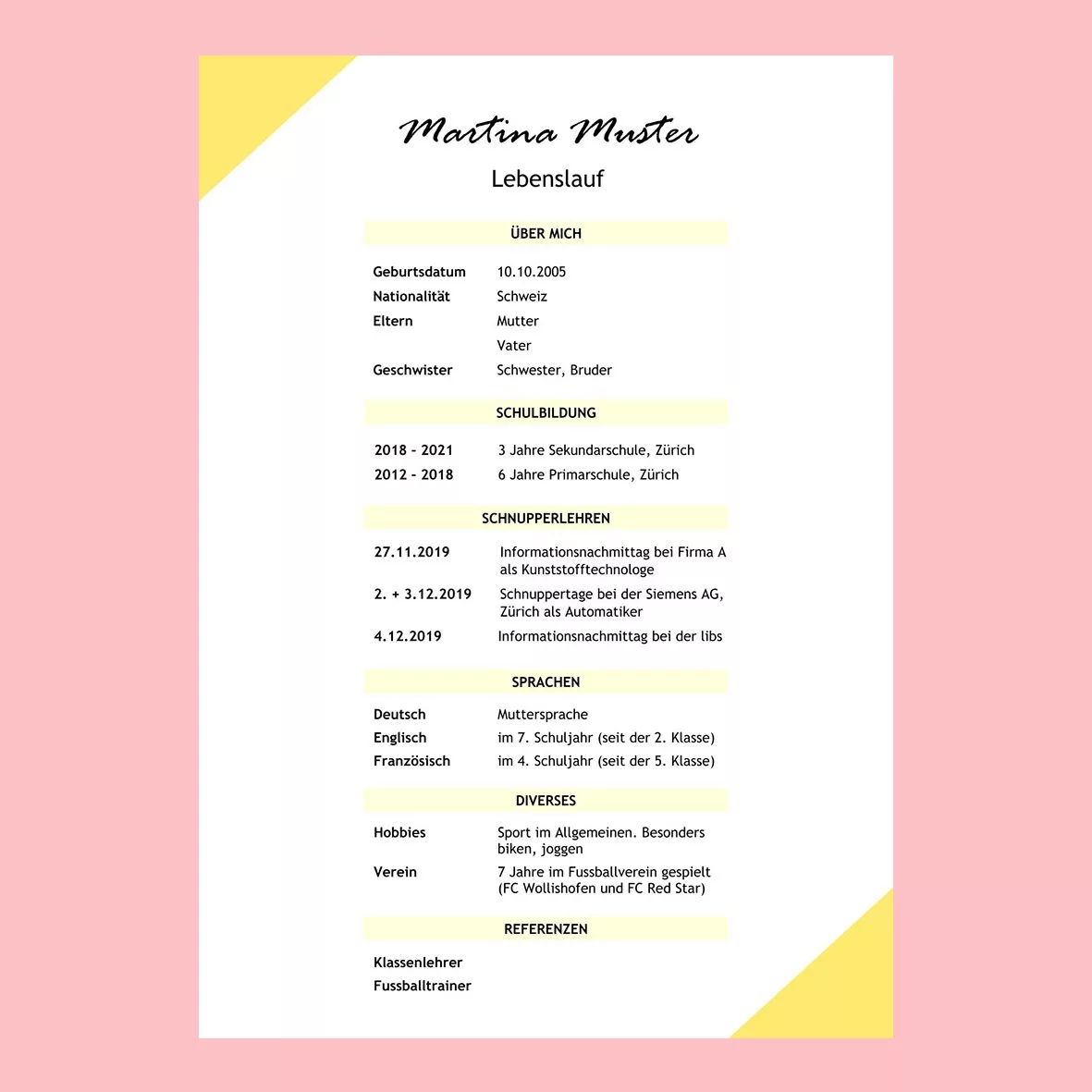 Dank seiner klaren Struktur und guten Lesbarkeit ist dieser Lebenslauf die am häufigsten genutzte Form.
