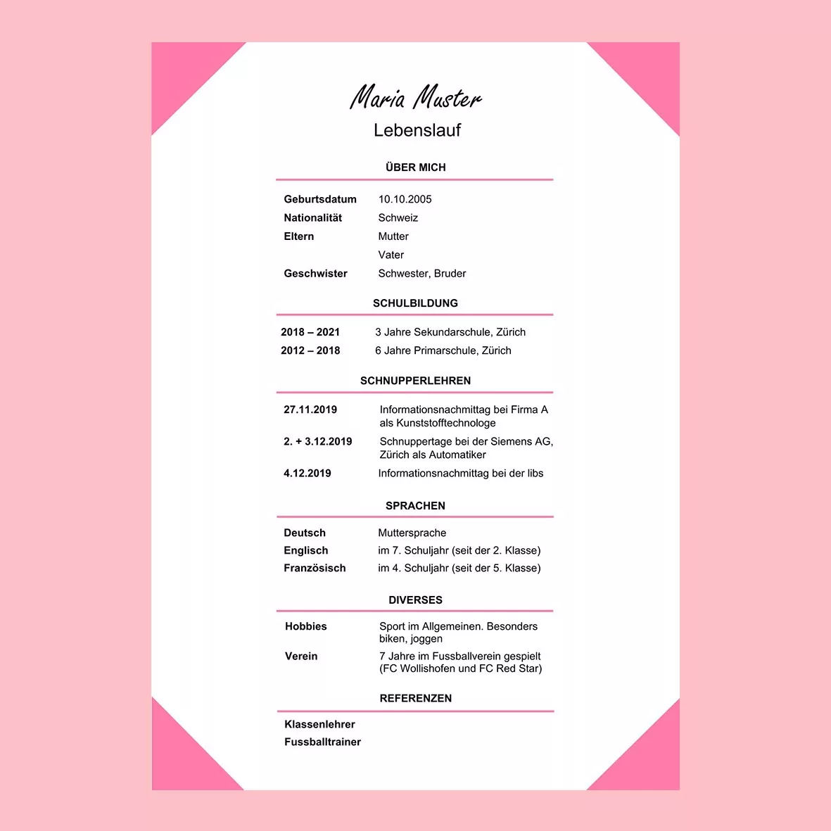 Dank seiner klaren Struktur und guten Lesbarkeit ist dieser Lebenslauf die am häufigsten genutzte Form.