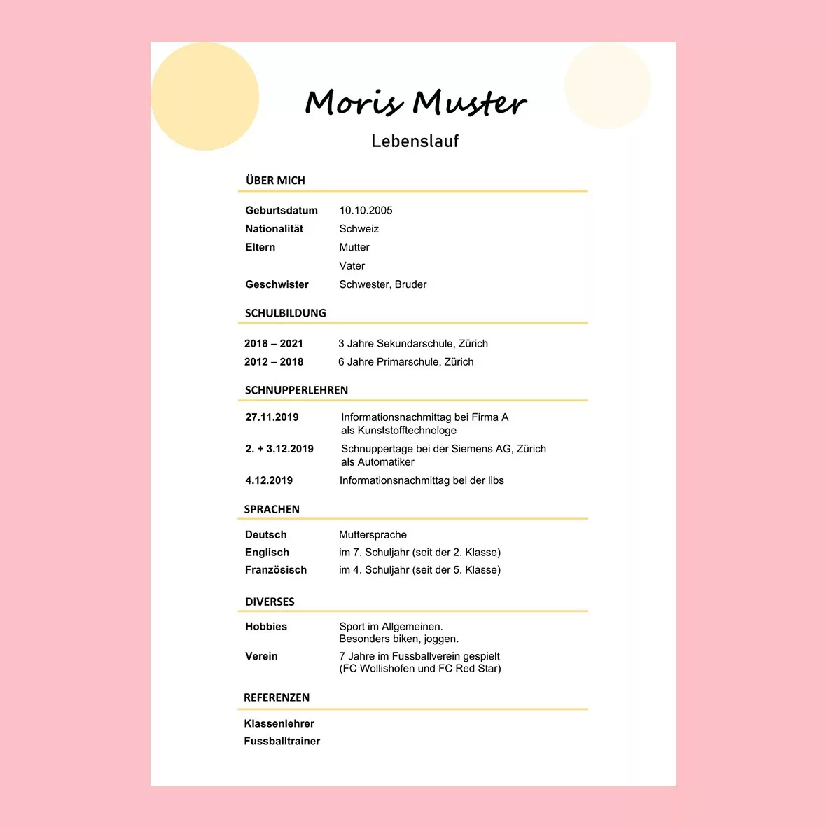 Standard-Lebenslauf (klassisch, tabellarisch)