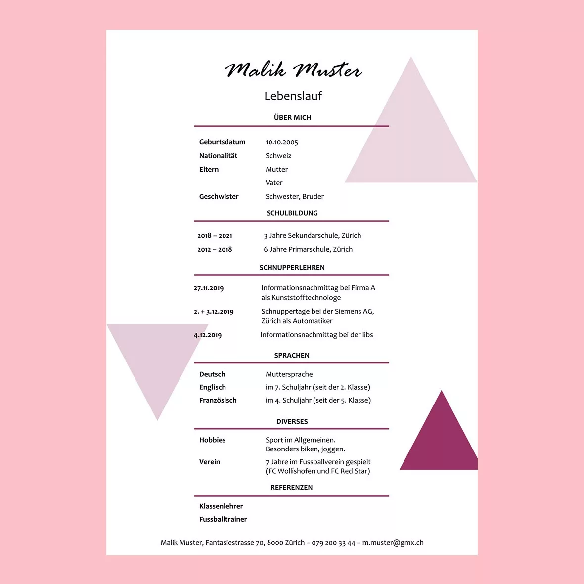 Dank seiner klaren Struktur und guten Lesbarkeit ist dieser Lebenslauf die am häufigsten genutzte Form.