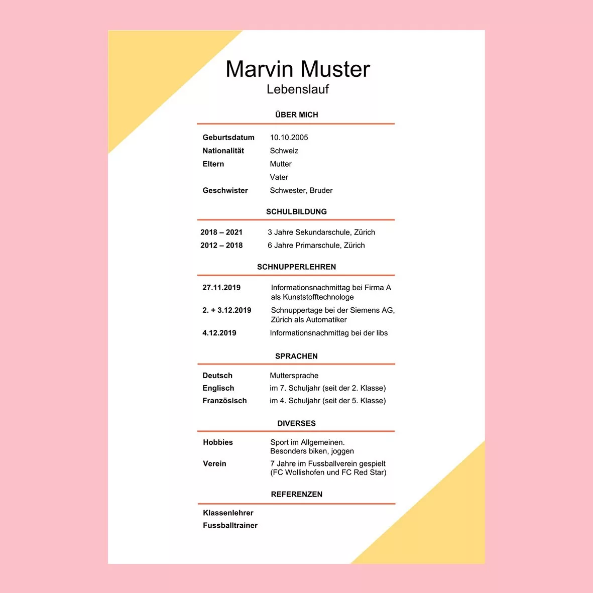 Dank seiner klaren Struktur und guten Lesbarkeit ist dieser Lebenslauf die am häufigsten genutzte Form.