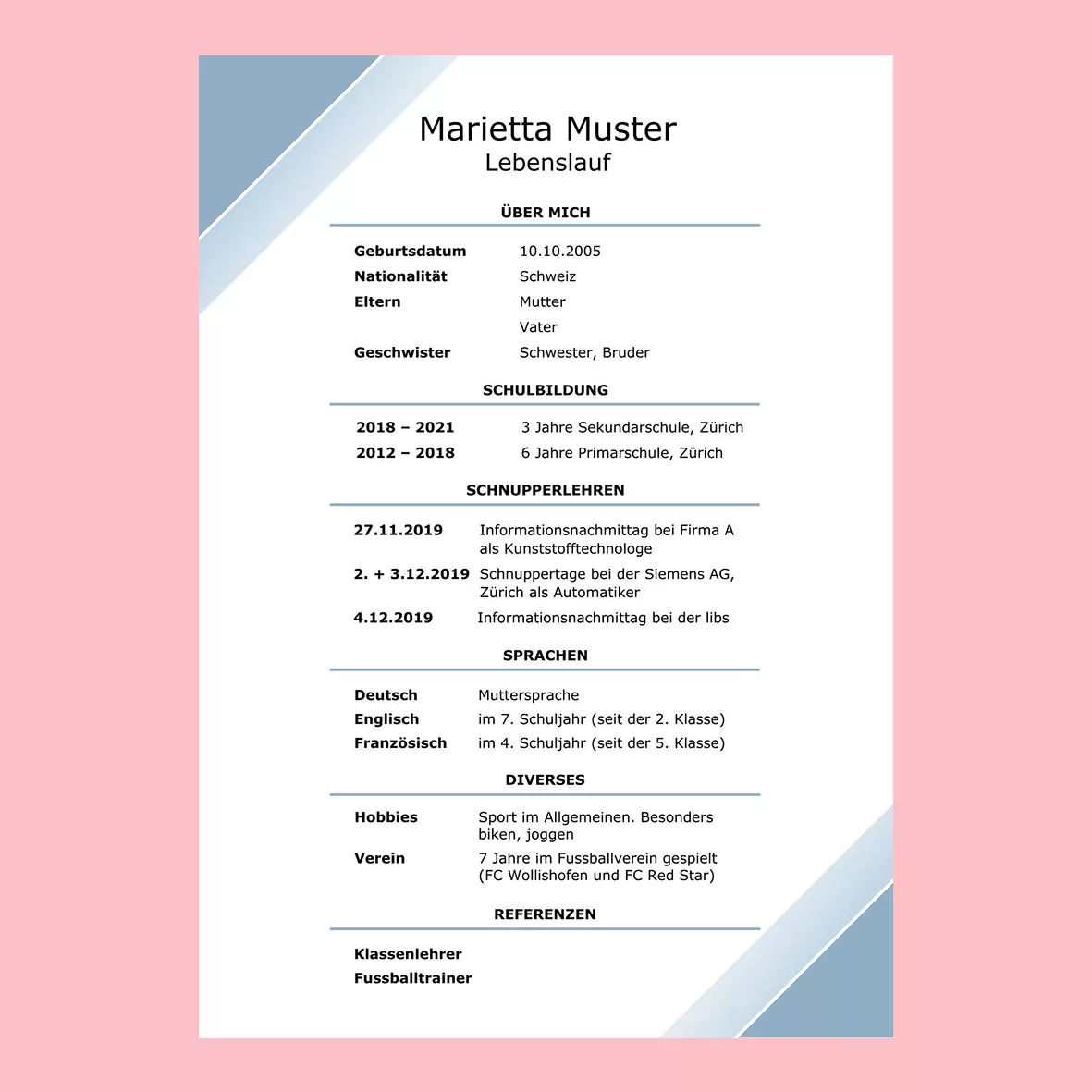 Dank seiner klaren Struktur und guten Lesbarkeit ist dieser Lebenslauf die am häufigsten genutzte Form.
