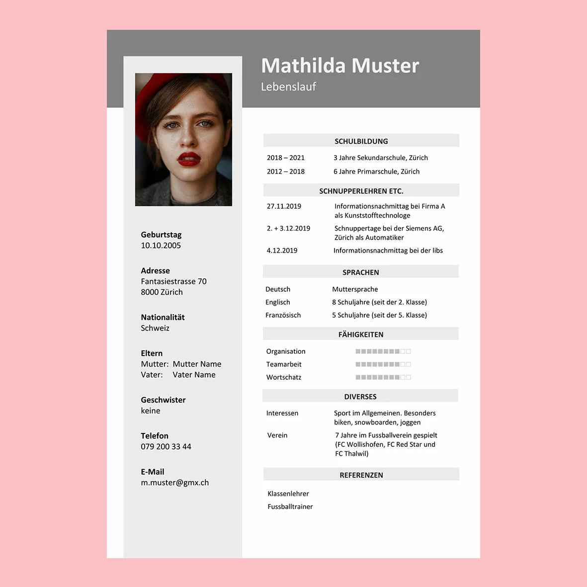 übersichtliche Struktur I ansprechendes Design I gute Leseführung I inhaltlich vollständig I individuell I grammatikalisch fehlerfrei
