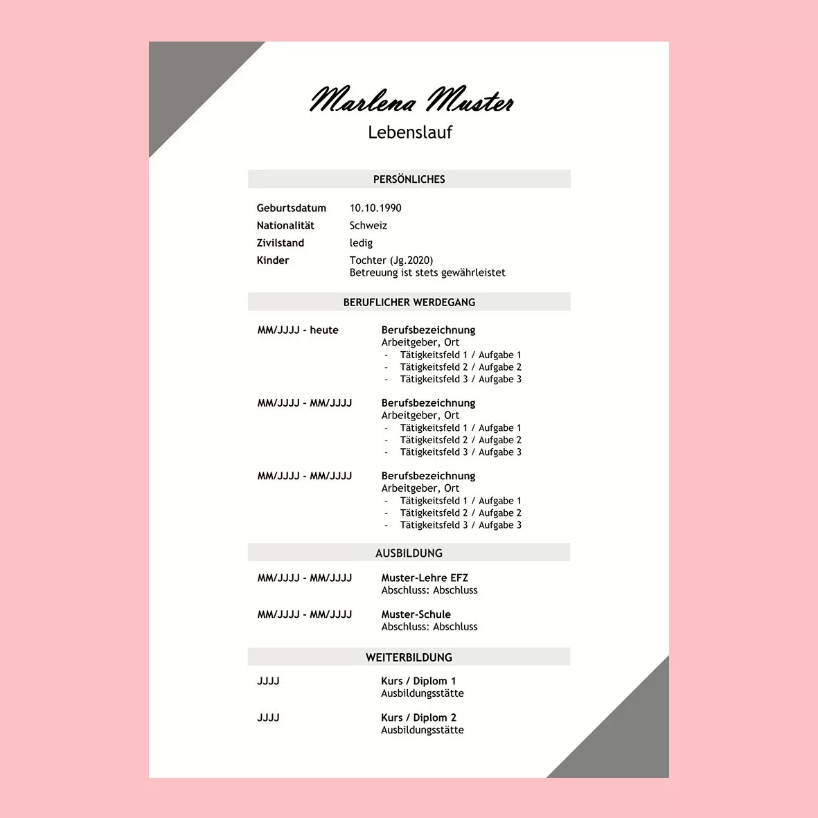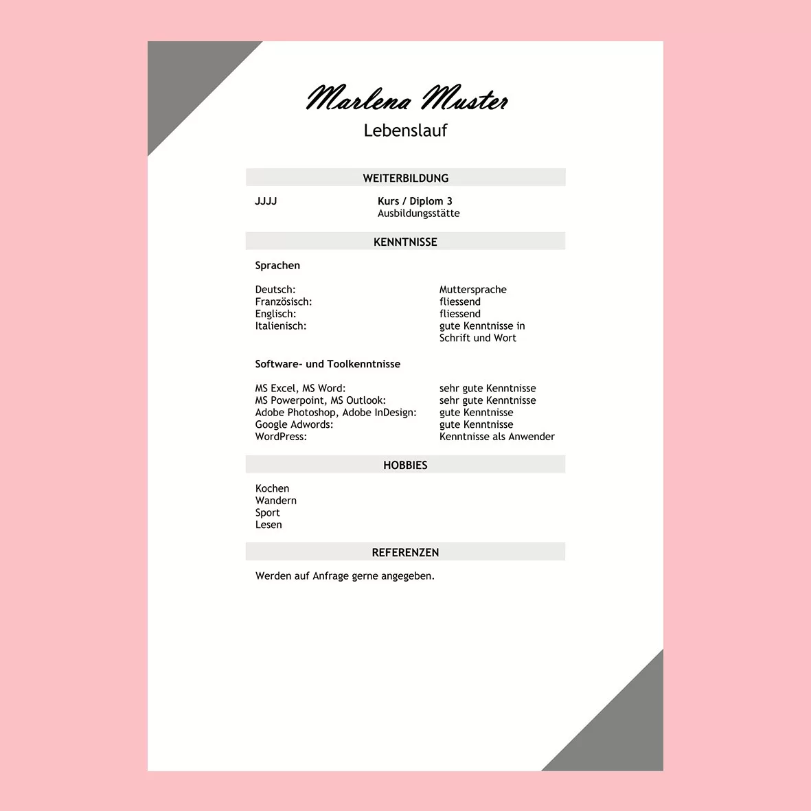 übersichtliche Struktur I ansprechendes Design I gute Leseführung I inhaltlich vollständig I individuell I grammatikalisch fehlerfrei