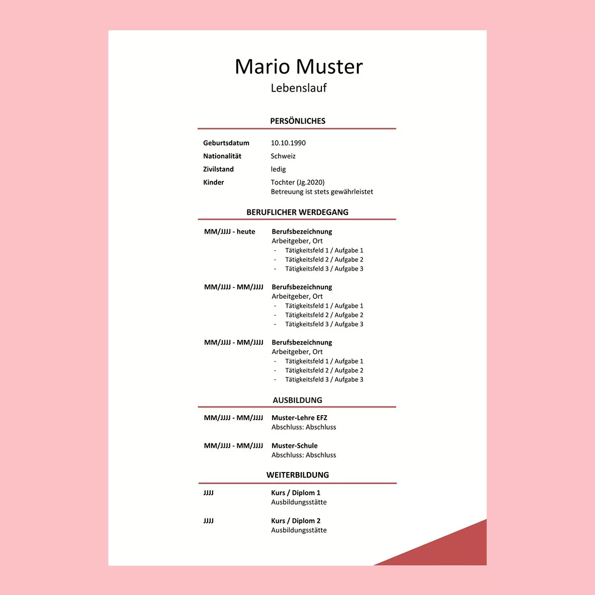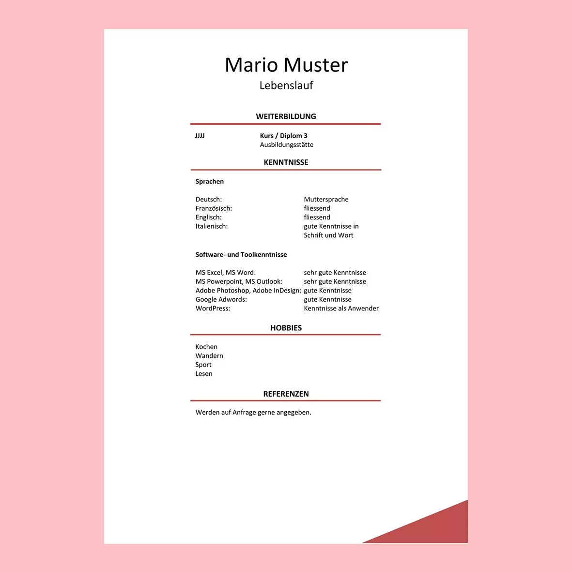 Dank seiner klaren Struktur und guten Lesbarkeit ist dieser Lebenslauf die am häufigsten genutzte Form.