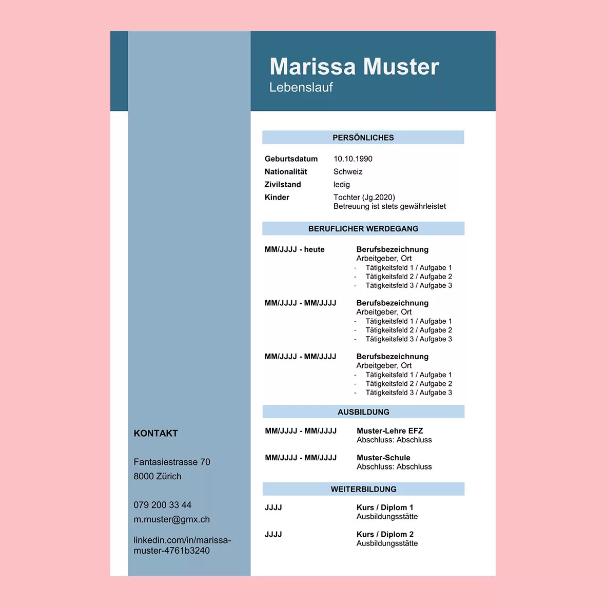 Dank seiner klaren Struktur und guten Lesbarkeit ist dieser Lebenslauf die am häufigsten genutzte Form.