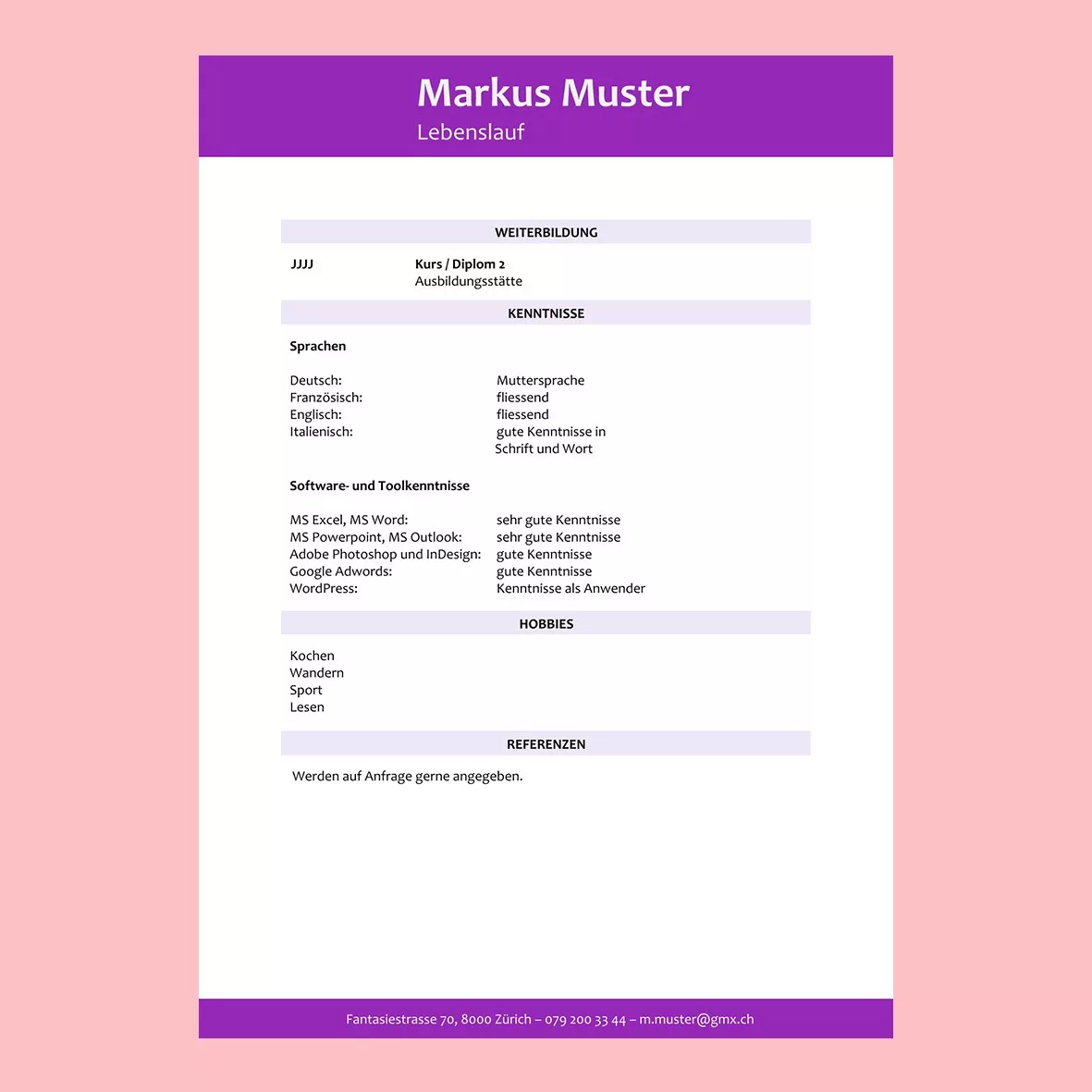 Dank seiner klaren Struktur und guten Lesbarkeit ist dieser Lebenslauf die am häufigsten genutzte Form.
