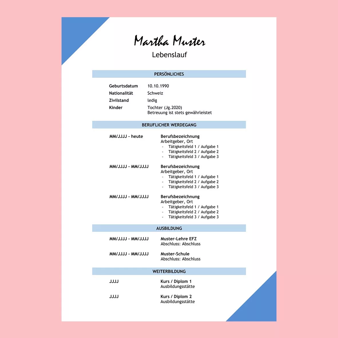 Dank seiner klaren Struktur und guten Lesbarkeit ist dieser Lebenslauf die am häufigsten genutzte Form.